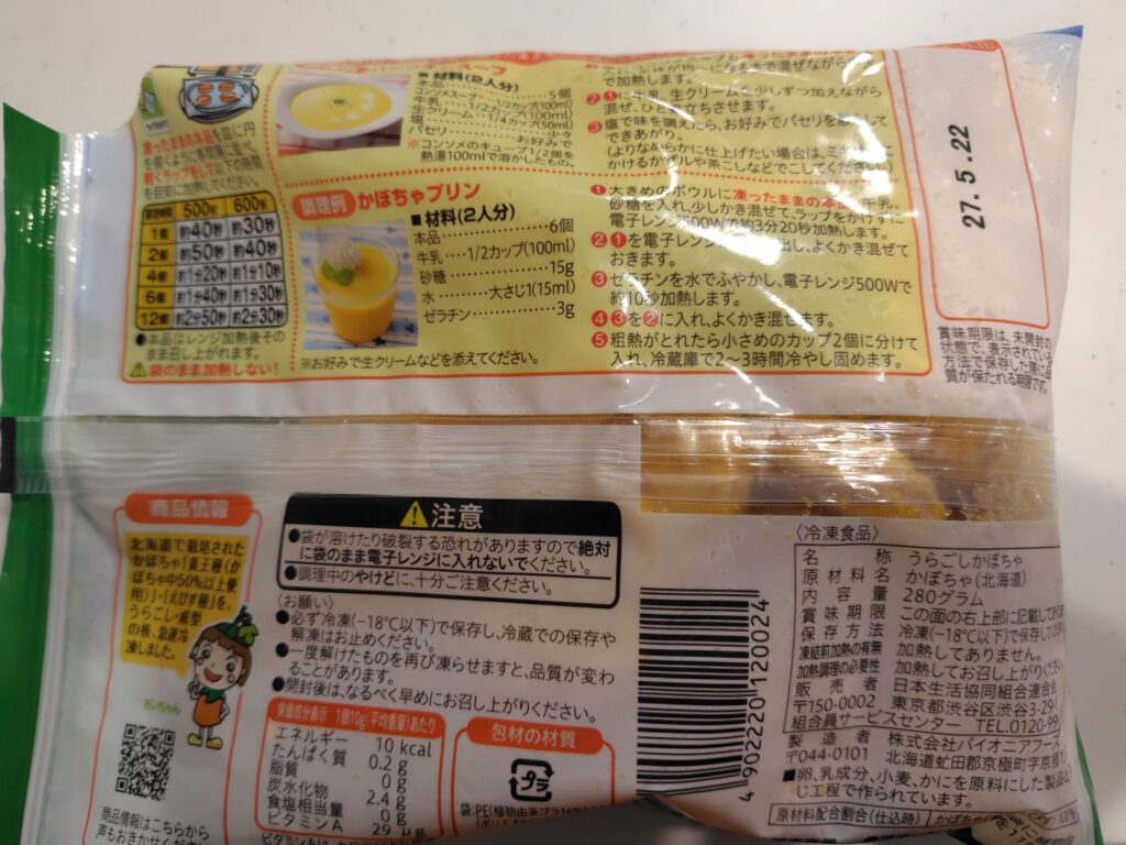 わが家では、離乳食時代からコープの冷凍裏ごしかぼちゃをずっと愛用しています。