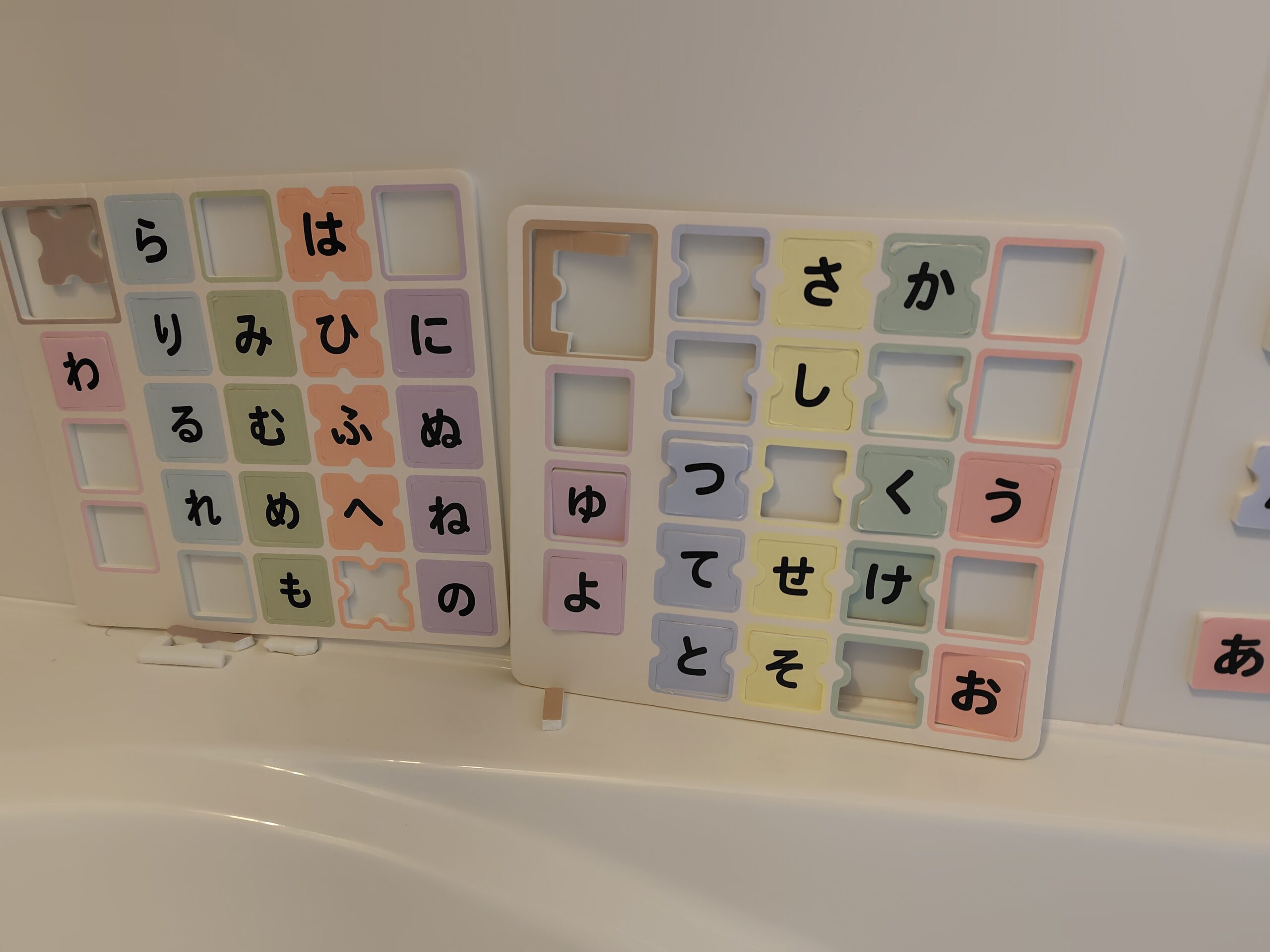 ひらがな、お風呂で使えるポスター兼パズル