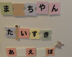 最初は眺めたり、「あ」の文字はどこにあるかクイズをしていましたが、今は文章を作ったりして楽しんでいます。